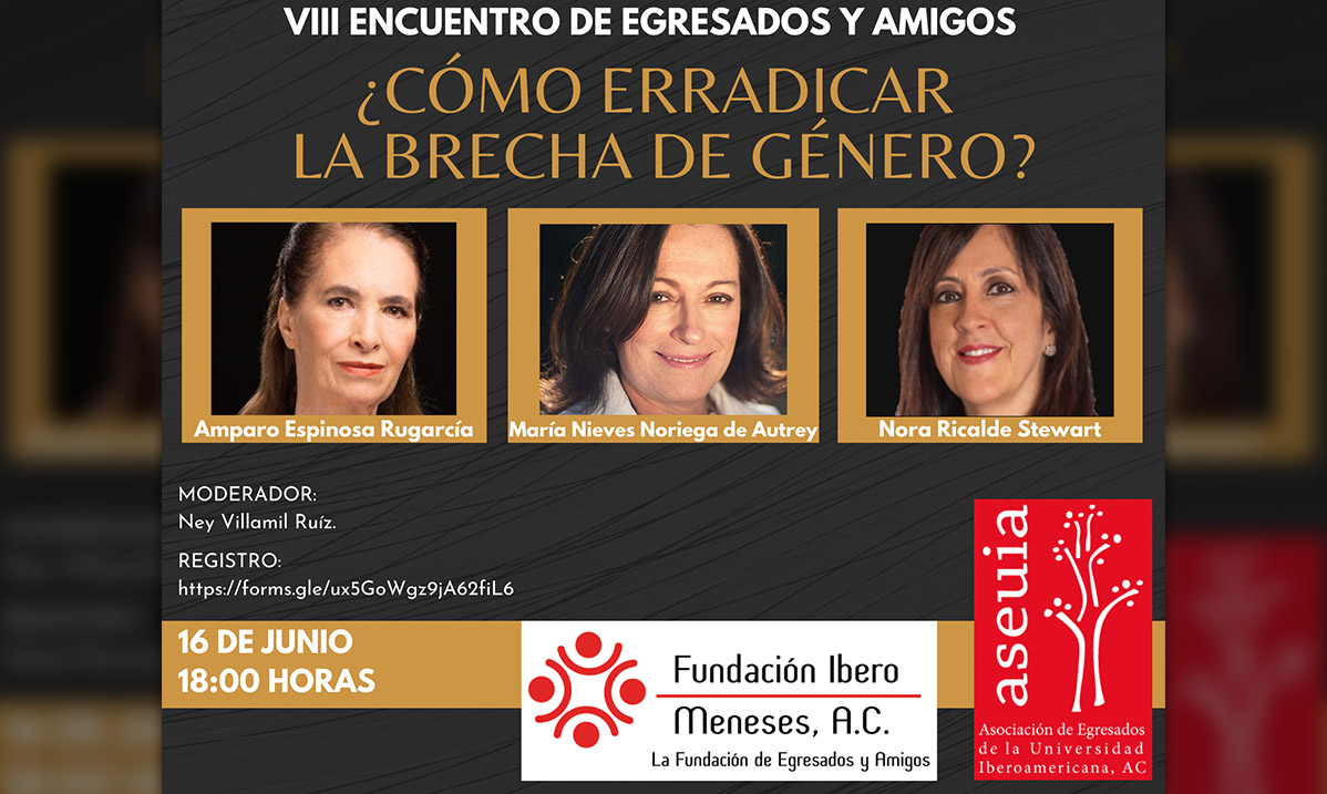 Estimados Egresados y Amigos La Fundación Ibero Meneses (FIM) y la Asociación de Egresados de la Universidad Iberoamericana (ASEUIA), los invitan al VIII Encuentro de Egresados y Amigos, el 16 de junio a las 18:00 hrs. con el tema ¿Cómo erradicar la brecha de género? Agradeceremos nos acompañen a este interesante panel.
