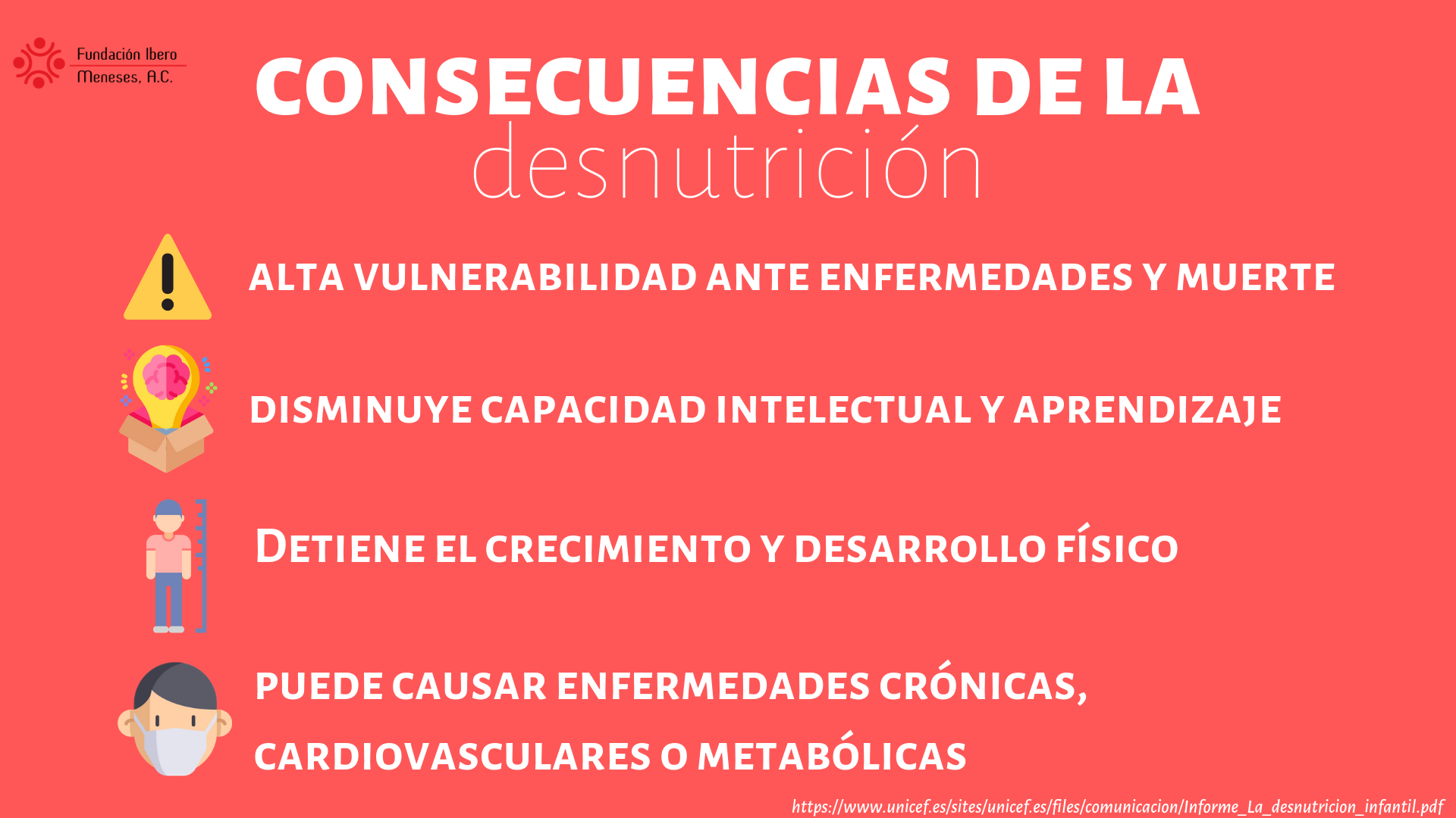 Las consecuencias de la desnutrición infantil son irreversibles, ya que se asocian con retardo en el crecimiento y el desarrollo psicomotor
