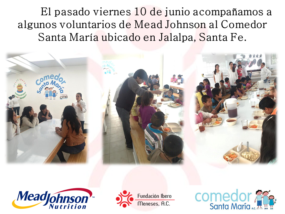 El pasado viernes 10 de junio asistimos al Comedor Santa María ubicado en Jalalpa, Santa Fe con algunos voluntarios de Mead Johnson.