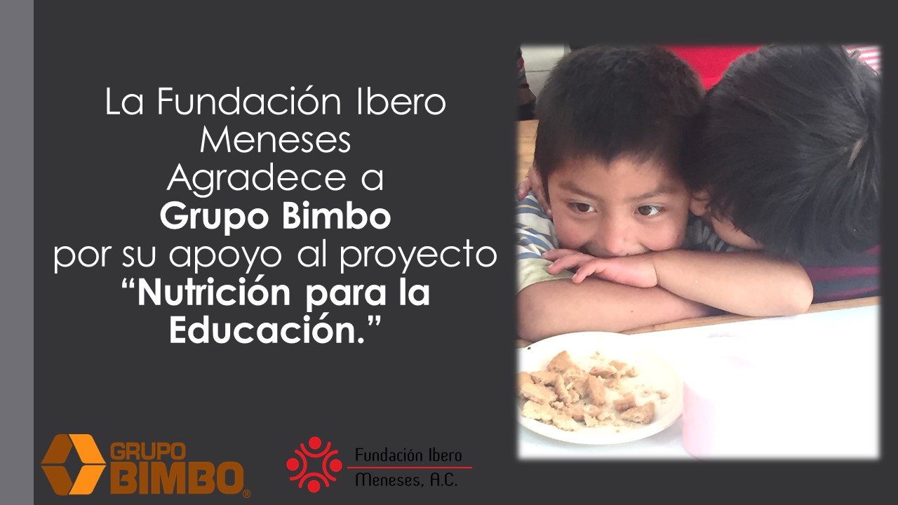 Queremos agradecer a Bimbo por su apoyo a nuestro programa Nutrición para la Educación.