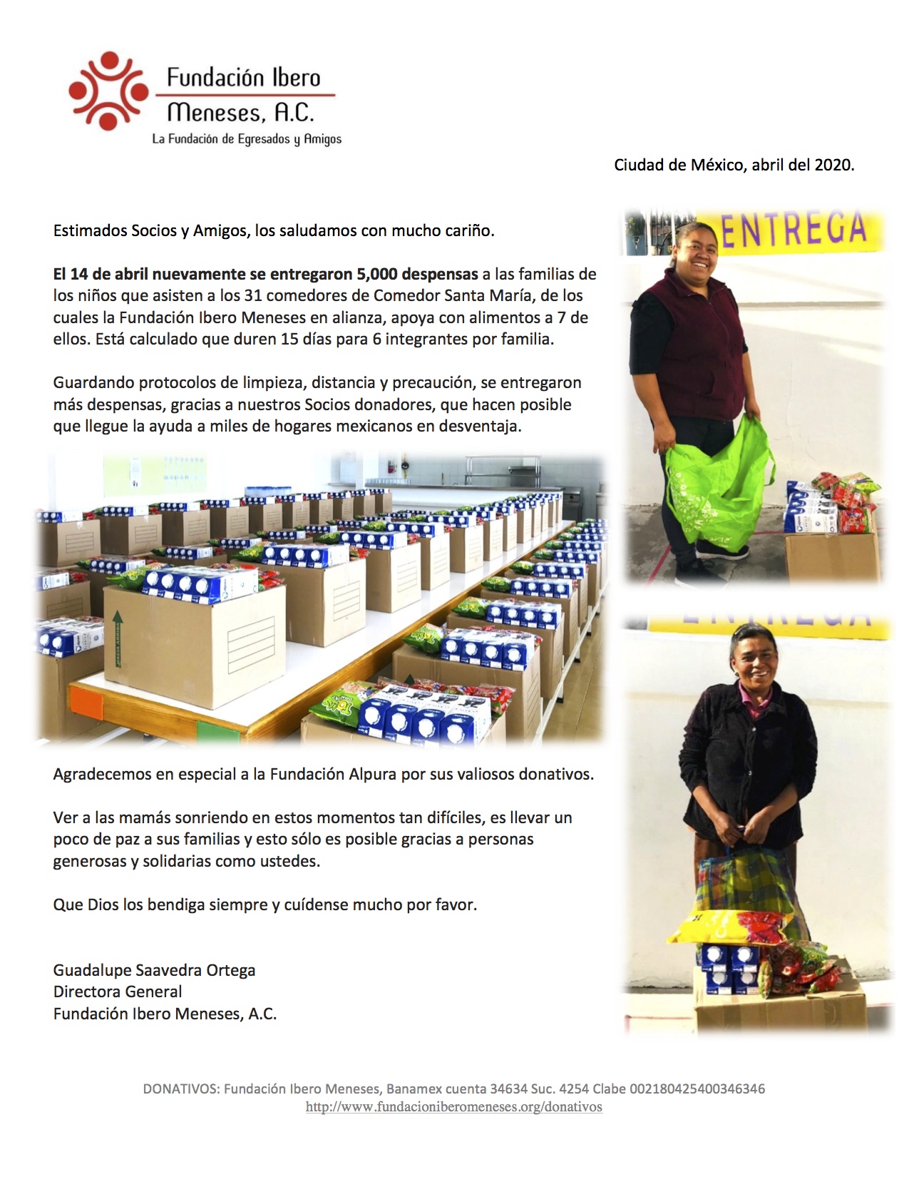 Las segundas despensas que se entregaron a los niños y sus familias contaban con litros de leche gracias a Fundación Alpura. Es muy significativo este apoyo para no desamparar a estas personas durante la contingencia derivada del Covid-19