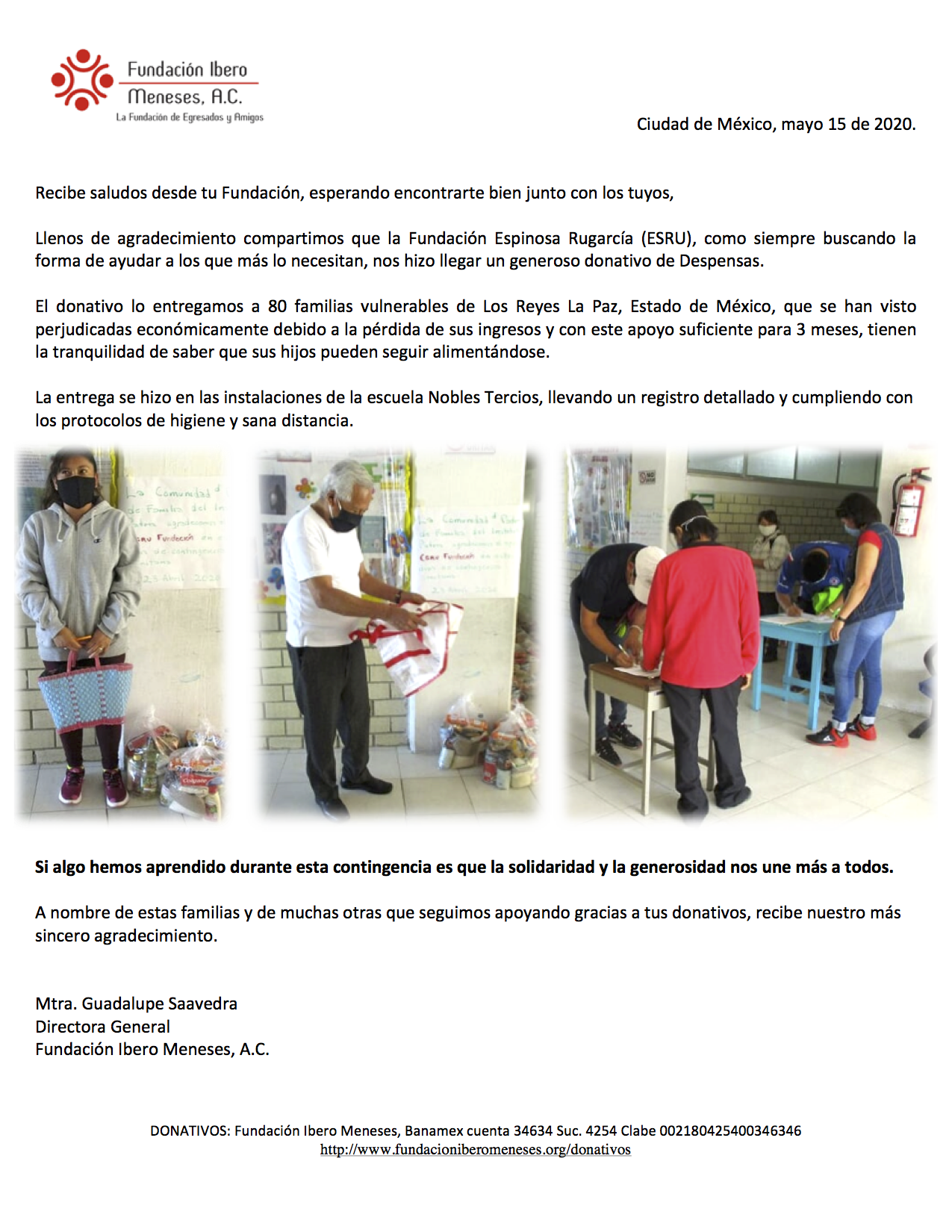Se recibieron despensas de Fundación ESRU destinadas a las familias de la escuela Nobles Tercios. ¡MUCHAS GRACIAS!