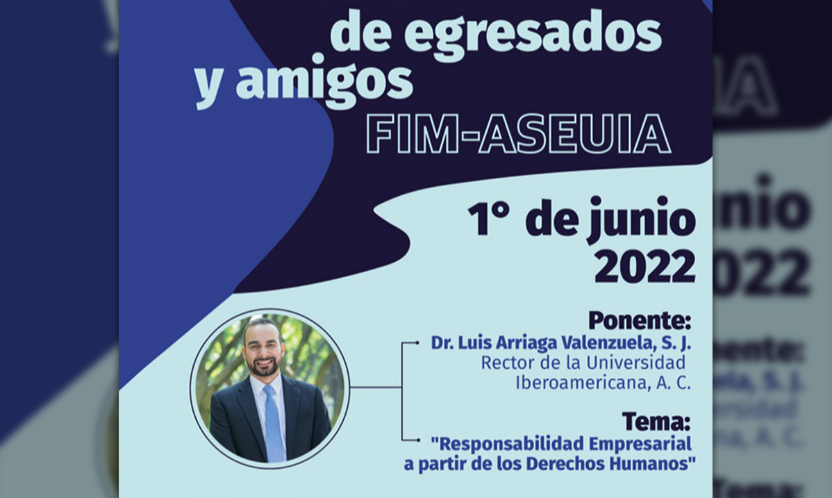 La Universidad Iberoamericana y la Asociación de Egresados de la Universidad Iberoamericana (ASEUIA), presenta el XI Encuentro de Egresados y Amigos FIM-ASEUIA que se llevó a cabo el 1 de junio de 2022 a las 14:00 hrs. con la conferencia "Responsabilidad Empresarial a partir de los Derechos Humanos", impartida por el Dr. Luis Arriaga Valenzuela, S.J. Rector de la Universidad Iberoamericana, A.C.