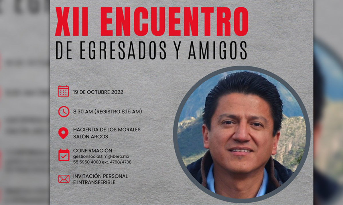 La Universidad Iberoamericana y la Asociación de Egresados de la Universidad Iberoamericana (ASEUIA), presenta el XII Encuentro de Egresados y Amigos FIM-ASEUIA que se llevó a cabo el 19 de octubre de 2022 a las 08:30 hrs. con la conferencia "Justicia y reconciliación para la paz", impartida por el Mtro. Jorge Atilano González Candia S.J. Encargado del Sector Social de la Provincia Mexicana de la Compañía de Jesús.